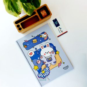 دفتر 2 خط سیمی 60 برگ جلد شده مدل کیوت طرح 1 | دفتر زبان 2 خط
