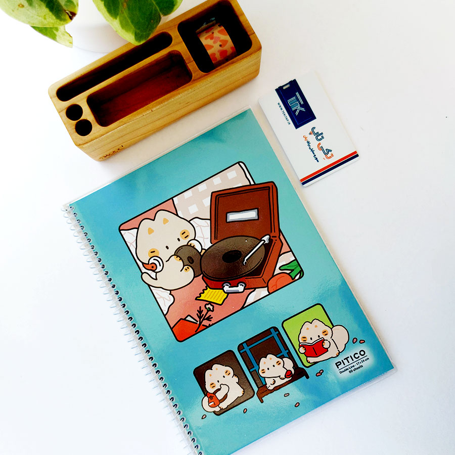 دفتر 2 خط سیمی 60 برگ جلد شده مدل کیوت طرح 8 | دفتر زبان 2 خط.
