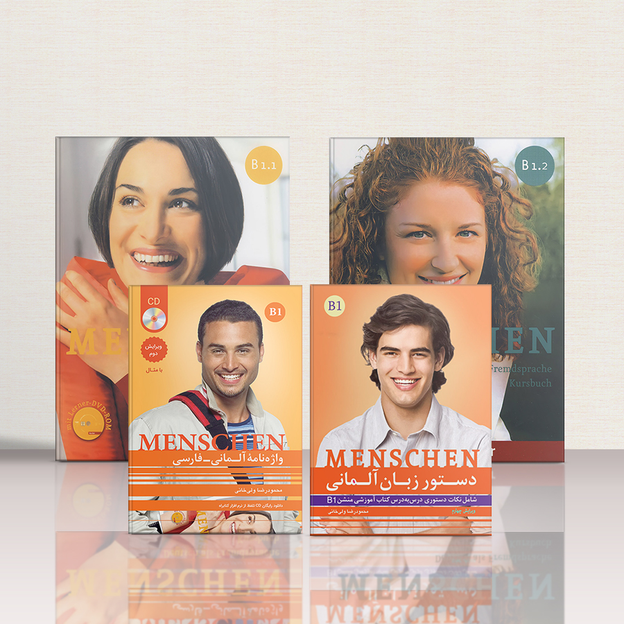 این محصول شامل کتاب Menschen B1.1 + Workbook و Menschen B1.2 + Workbook و فایلهای صوتی و کتاب لغات منشن B1 و کتاب دستور زبان منشن B1 است.