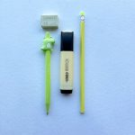 3- مداد مشکی سه گوش مدل پاکن دار رنگ بدنه زرد پاستلی