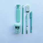 2- مداد مشکی سه گوش مدل پاکن دار رنگ بدنه سبزآبی پاستلی